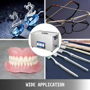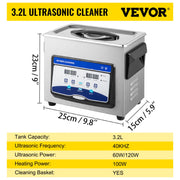 De VEVOR 3.2L ultrasoonreiniger is ontworpen voor grondige en efficiënte reiniging van diverse voorwerpen, zoals brillen, juwelen, horloges en kleine machineonderdelen. De reiniger is uitgerust met een ontgassingsfunctie die helpt bij het verwijderen van luchtbellen en verontreinigingen, waardoor het reinigingsproces sneller en effectiever wordt. Het apparaat heeft een ultrasone frequentie van 40kHz, wat zorgt voor krachtige en gedetailleerde reiniging zonder schade aan de te reinigen items. De 3.2L tankcapaciteit biedt voldoende ruimte voor meerdere voorwerpen tegelijk, ideaal voor zowel commercieel als huishoudelijk gebruik.