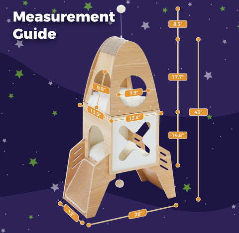 De kattenboom is gemaakt van duurzaam hout en afgewerkt met hoogwaardige krabvellen die de klauwen van uw kat gezond houden en uw meubels beschermen. De raketvorm maakt het niet alleen een krabpaal, maar ook een stijlvol decoratief element in uw huis. De geïntegreerde speeltjes zorgen voor extra plezier en stimuleren de natuurlijke jachtinstincten van uw kat, wat zorgt voor urenlang entertainment.